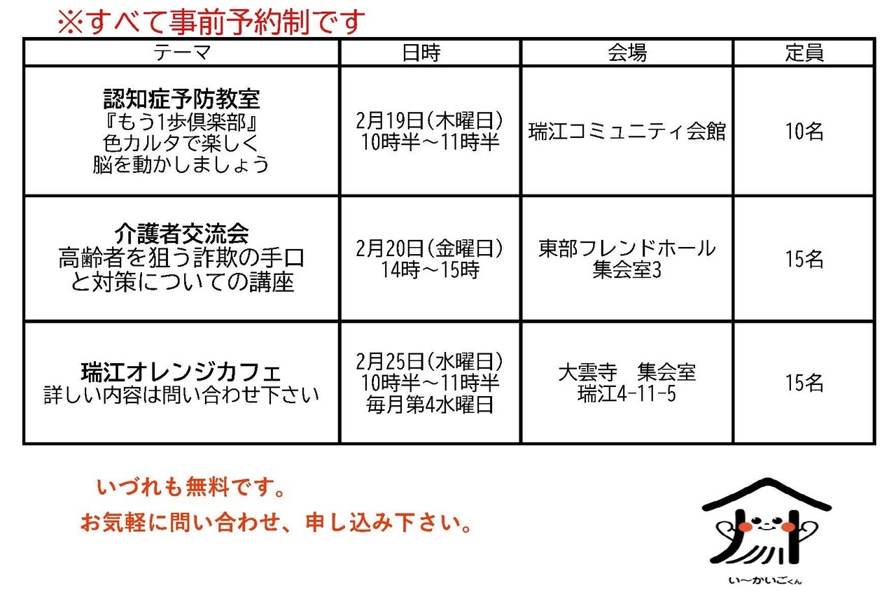 この相談事業は江戸川区からの委託事業で、熟年者に関しての総合相談窓口です(地域包括支援センター)。江戸川区では「地域包括支援センター」のことを、愛称で『熟年相談室』と呼んでいます。