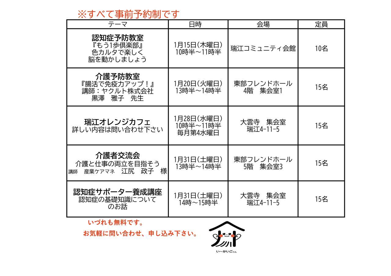 1月のイベント予定